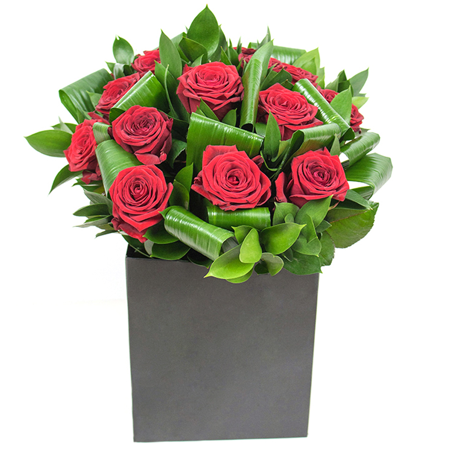 Our Vibrant Red Luxe Bouquet is designed for those who appreciate the artistry of nature. A symphony of red roses, aspidistra leaves, and ruscus creates an arrangement that is both striking and stylish. Expertly hand-picked for superior freshness and quality, every flower contributes to an enchanting display of color and form.